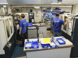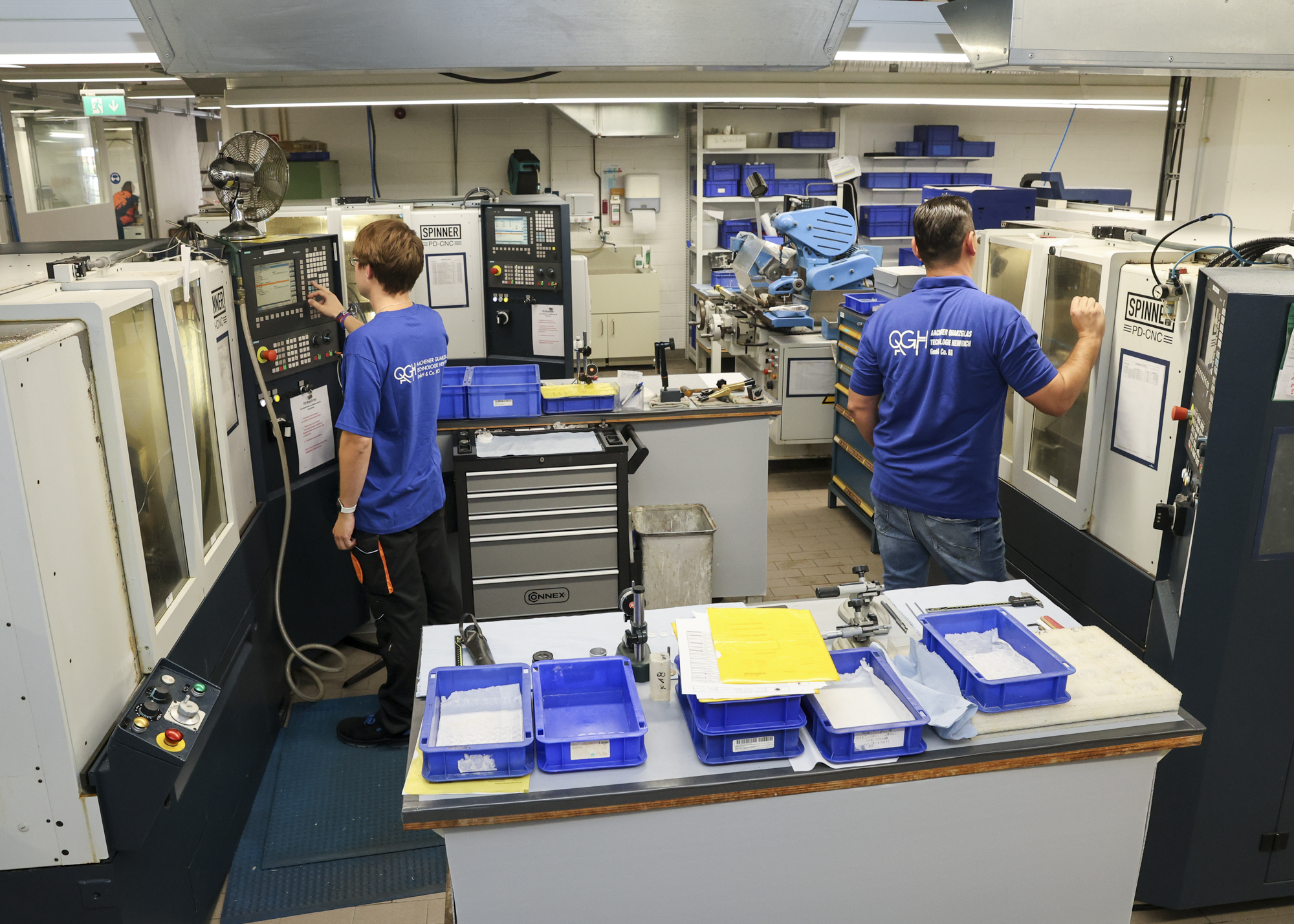 Auf einer Produktionsfläche von 2500 Quadratmetern stehen mehr als 100 Spezialmaschinen für die schleiftechnische Bearbeitung von Quarzglas, Borosilikatglas und technischen Keramiken zur Verfügung. Hier kommen moderne Technologien, wie z.B. das CNC-5-Achs-Fräsen oder die Ultraschallbearbeitung zum Einsatz, die eine präzise Bearbeitung der wertvollen Werkstücke gewährleisten.