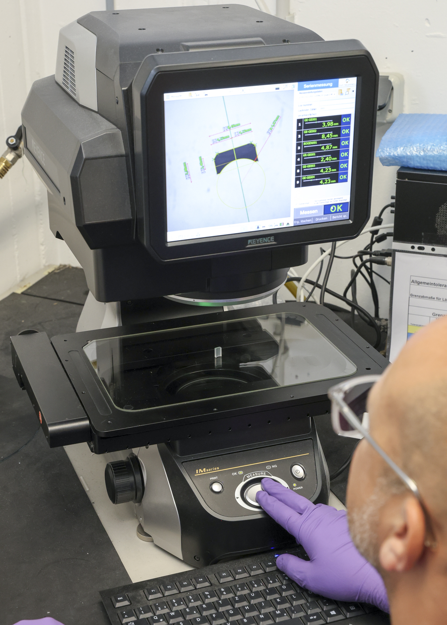 - Optisches Messen – Hochauflösende Kamerasysteme und moderne Messtechniken für die berührungslose Prüfung von Form und Oberflächen.