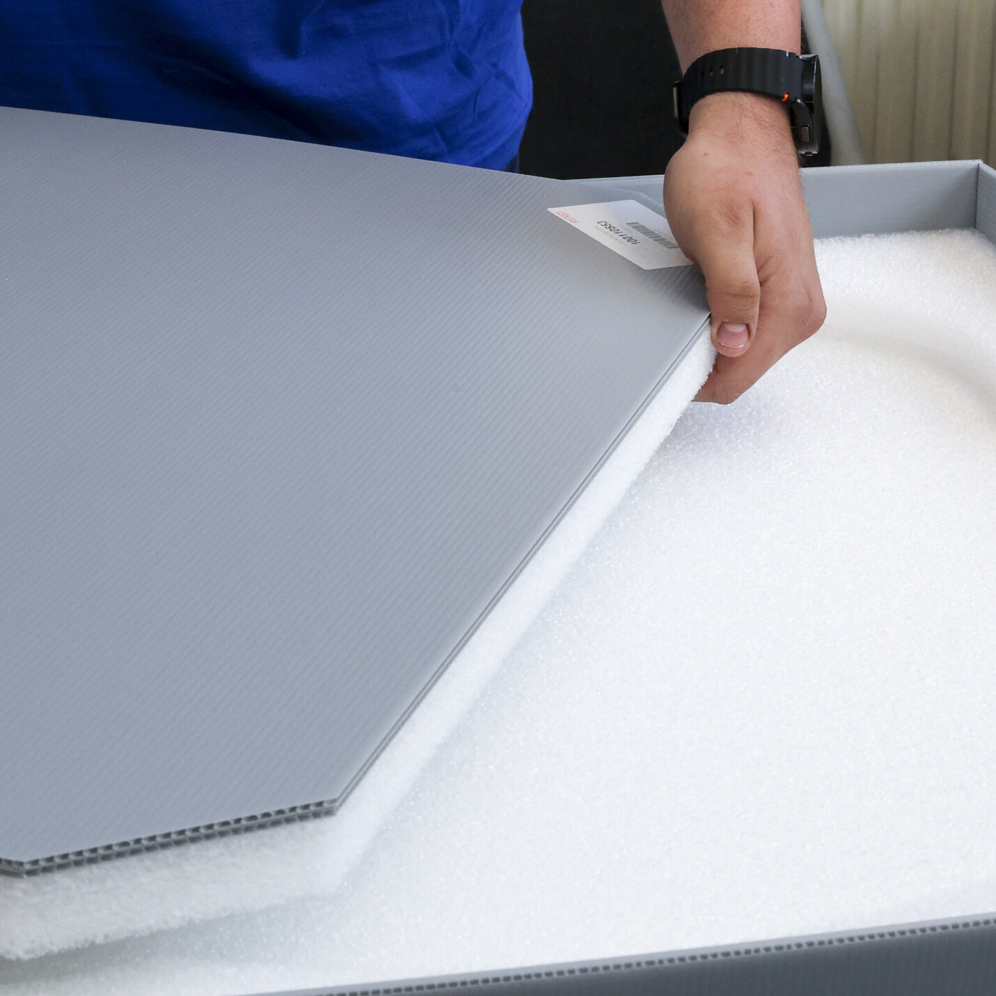 - Doppelstegplatte / Hohlkammerplatte aus PP, antistatisch – Leichtes, stabilisierendes Material mit antistatischem Schutz für sensible Bauteile.